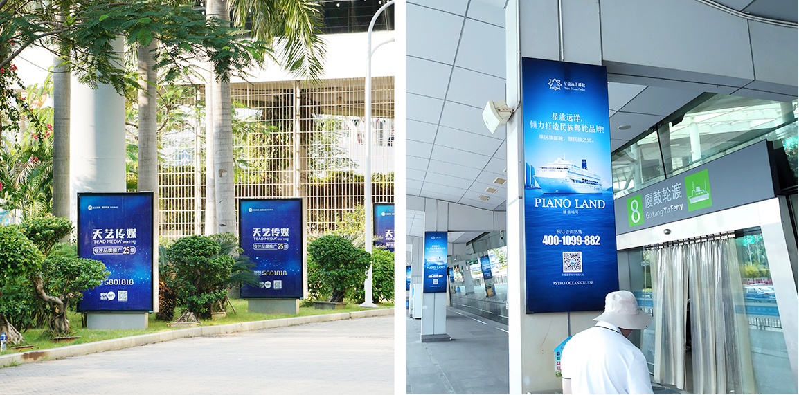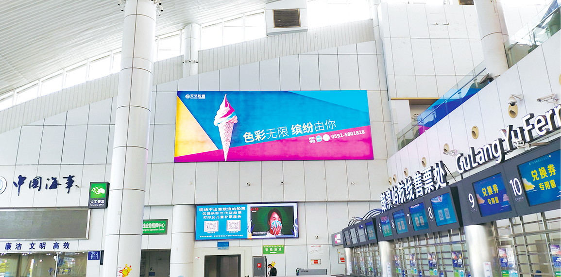 媒體位置設(shè)立于廣場/外圍,售票大廳,候船大廳,乘船通道,南北出入口等區(qū)域