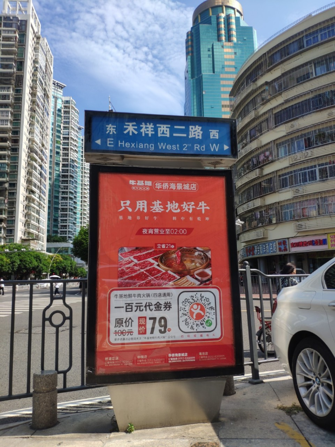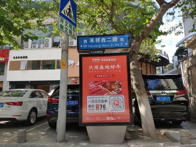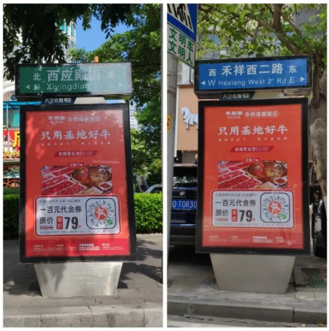 ?;嘏c天藝傳媒強(qiáng)強(qiáng)聯(lián)手,精準(zhǔn)宣傳將?;厝A僑海景城店附近的城市路名牌戶外媒體進(jìn)行定點(diǎn)宣傳。